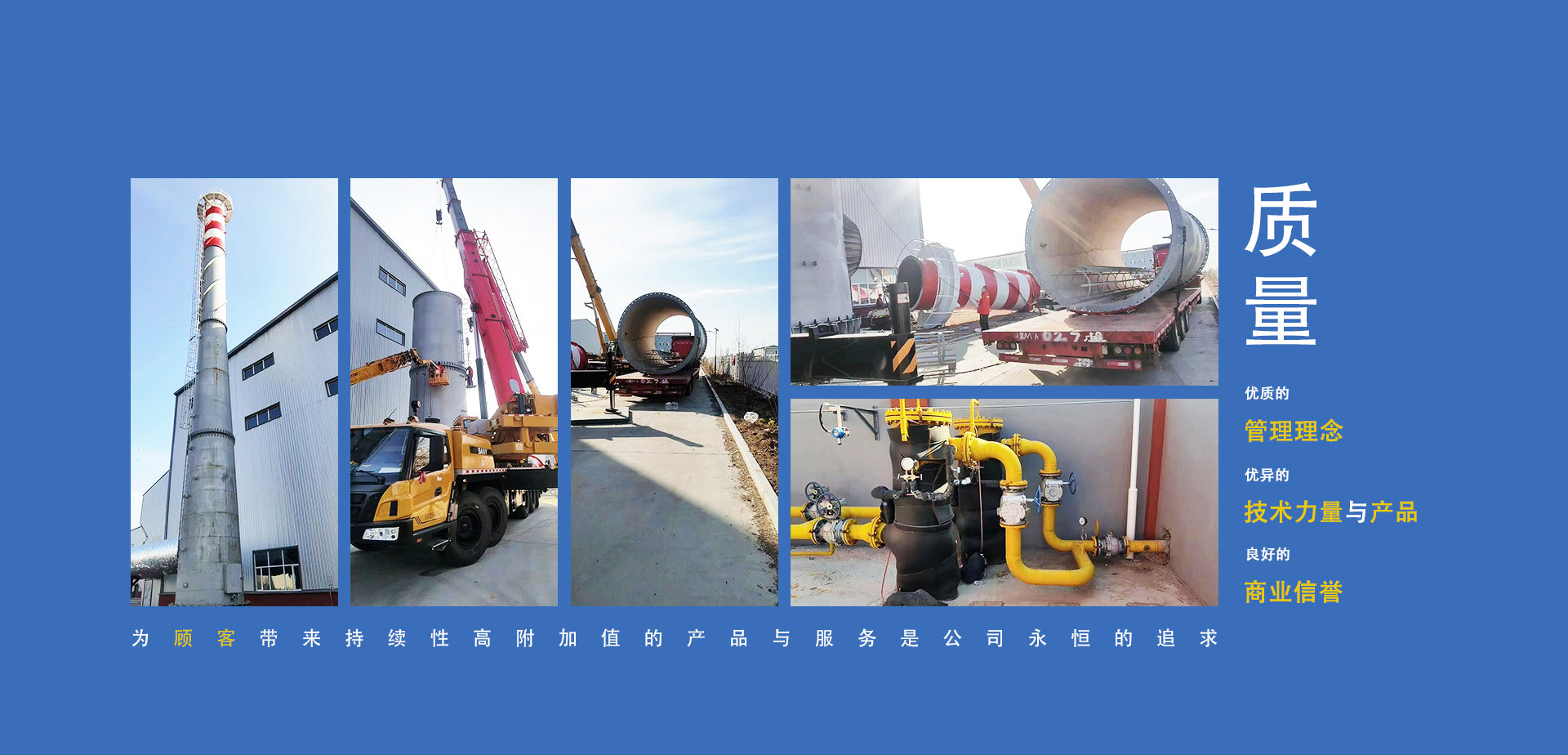 公司制定了“以質(zhì)量求生存、以管理求發(fā)展、以服務(wù)增信譽(yù)”的質(zhì)量方針。通過(guò)了質(zhì)量管理體系、環(huán)境管理體系、職業(yè)健康安全管理體系、企業(yè)信用評(píng)價(jià)管理體系(AAA級(jí))、五星級(jí)售后服務(wù);取得了D1、D2級(jí)壓力容器制造生產(chǎn)許可資質(zhì),壓力管道元件制造生產(chǎn)許可資質(zhì);黑龍江省高新技術(shù)企業(yè)。